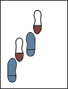 2. Schritt Er: linker Fuß - vor - seitwärts |
